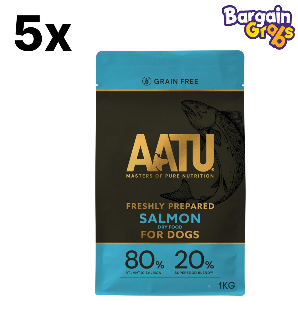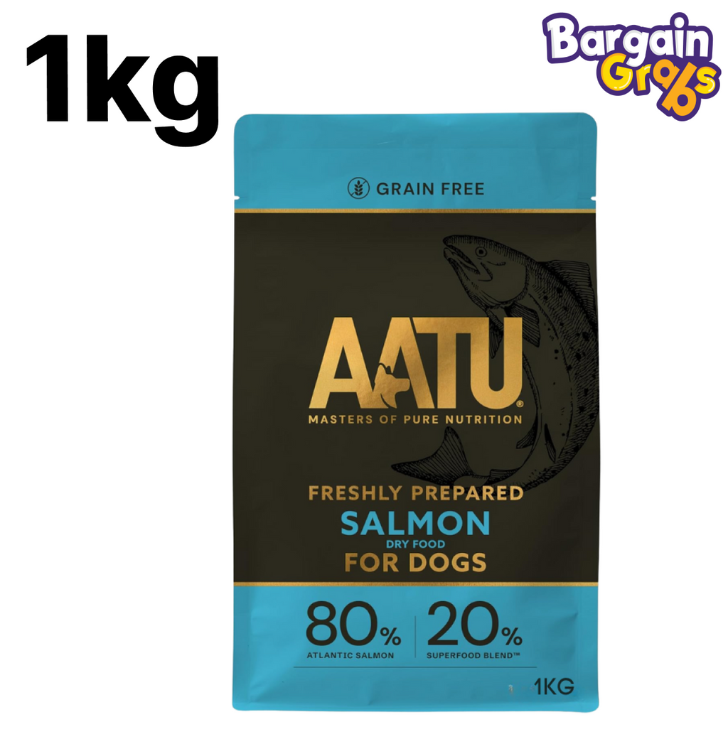 Give your dog premium, grain-free nutrition with AATU 80/20 Complete Dry Dog Food Salmon 1kg, available in your choice of 5-pack or 10-pack options. Made with 80% salmon and 20% vegetables, fruits, herbs, and botanicals, this high-protein recipe delivers complete and biologically appropriate nourishment for adult dogs.