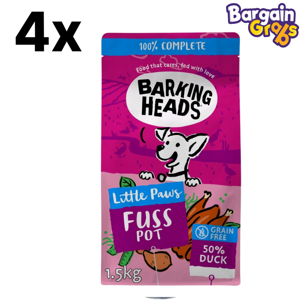 Treat your small breed dog to premium, fuss-free nutrition with Barking Heads Little Paws Fuss Pot Dry Dog Food Duck 1.5kg, now available in single or value 4-pack options. Specially designed for small breed adults, this complete dry food is made with 50% duck, offering a flavourful and protein-rich recipe ideal for picky eaters and sensitive dogs.